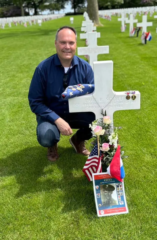 After visiting Normandy, the Zoontjen family decided to apply to the "Adopt a grave" program. They were shocked to learn that there was a six month waiting period. They were very pleased when they were assigned to Sgt. Paul Scott of Milford and began researching Paul and his military career.