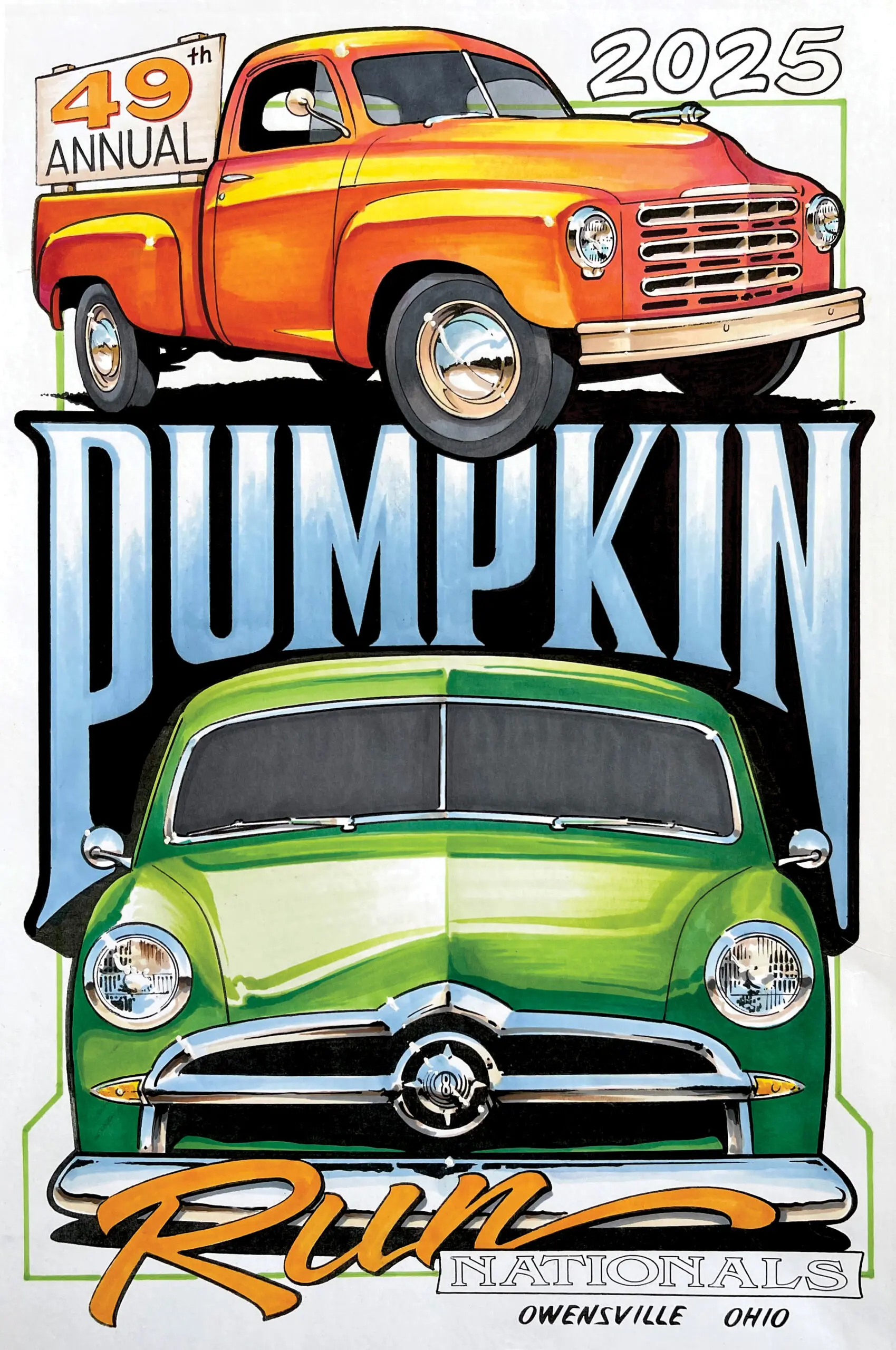 The Pumpkin Run Nationals returns to the Clermont County Fairgrounds Friday–Sunday, October 3–5, 2025, bringing thousands of pre-1974 classics, customs, hot rods, and trucks, plus live music, food and craft vendors, a swap meet, and family-friendly activities all weekend. Hosted and sponsored by Fastiques Rod & Custom Car Club, the event celebrates its 49th year and continues to stand as Southwest Ohio’s largest fall car show—drawing more than 2,500 registered vehicles and over 10,000 spectators across three days.